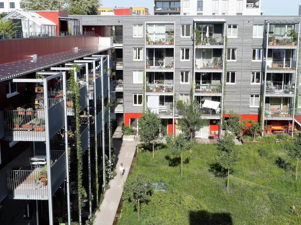 Das Quartier ist charakterisiert durch kompakte, weitgehend mehrstöckige Wohnbebauung (siehe die drei Bilder unten als Beispiel) mit großzügigen Grünanlagen und verkehrsberuhigten Bereichen. Etliche Projekte wurden von Baugemeinschaften und Wohnungsbaugenossenschaften realisiert, aber auch die stadteigenen Wohnungsbaugesellschaften waren dort aktiv. Im Quartier gibt es auch einige Pflegewohnungen für ältere Menschen und – in einem anderen Haus untergebracht – einen Pflegestützpunkt. Über das gesamte Viertel verteilt sind insgesamt 10 Gemeinschaftsräume, die für kulturelle Veranstaltungen, Partys oder Kurse genutzt werden (darunter auch einer, der von außen uneinsehbar ist und deshalb gern für Angebote genutzt wird, die sich an Muslimas richten).