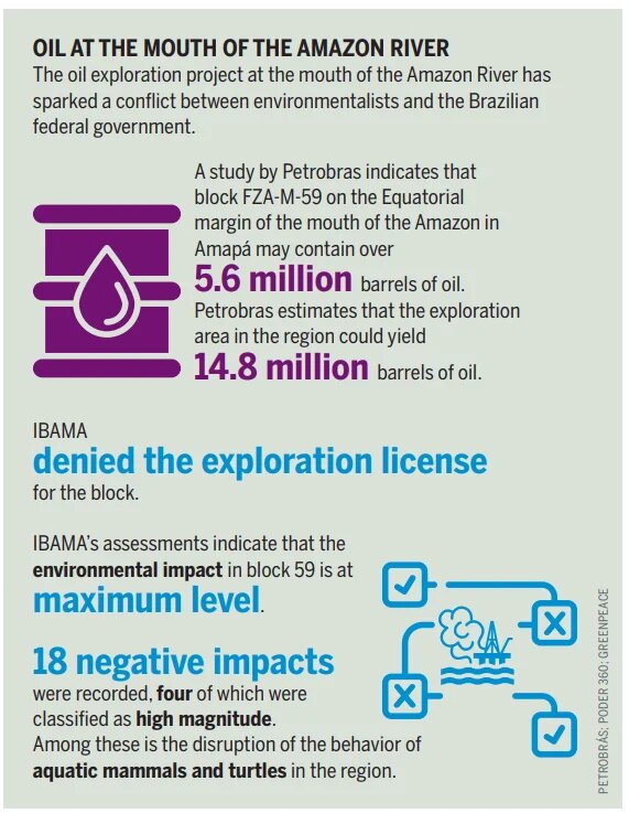 Schließlich ist auch die laufende Erdölerschließung im Oberen Amazonasbecken sowie an der Atlantikküste der Bundesstaaten Pará und Amapá zu erwähnen. Im November 2024 befand sich das Projekt nach einer Phase der Erkundung und Prospektion in der Auktions- und Konzessionsphase. Die Verschiebung geopolitischer und wirtschaftlicher Interessen, besonders im Vorfeld der COP30, inmitten weltweit zunehmender Extremwetterereignisse und der dringenden Notwendigkeit von einer globalen Energiewende, werfen wichtige Fragen auf: Kann die Förderung von Erdöl an der Amazonas-Mündung fortgesetzt werden, ohne eine irreversible Umweltzerstörung zu riskieren, inmitten eines sich beschleunigenden Klimakollapses? Welche Rolle sollte Brasilien in der internationalen Klimapolitik künftig einnehmen?